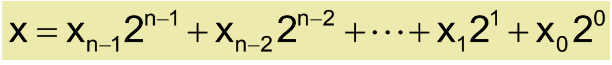 - = 0 + ... + 1x2^3 + 0x2^2 + 1x2^1 + 1x2^0